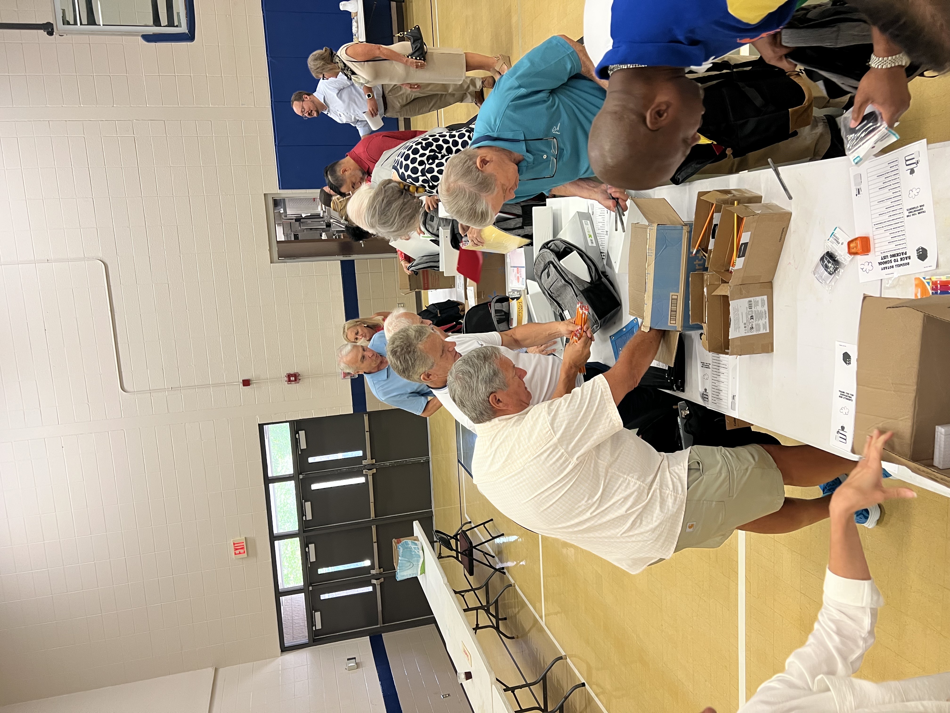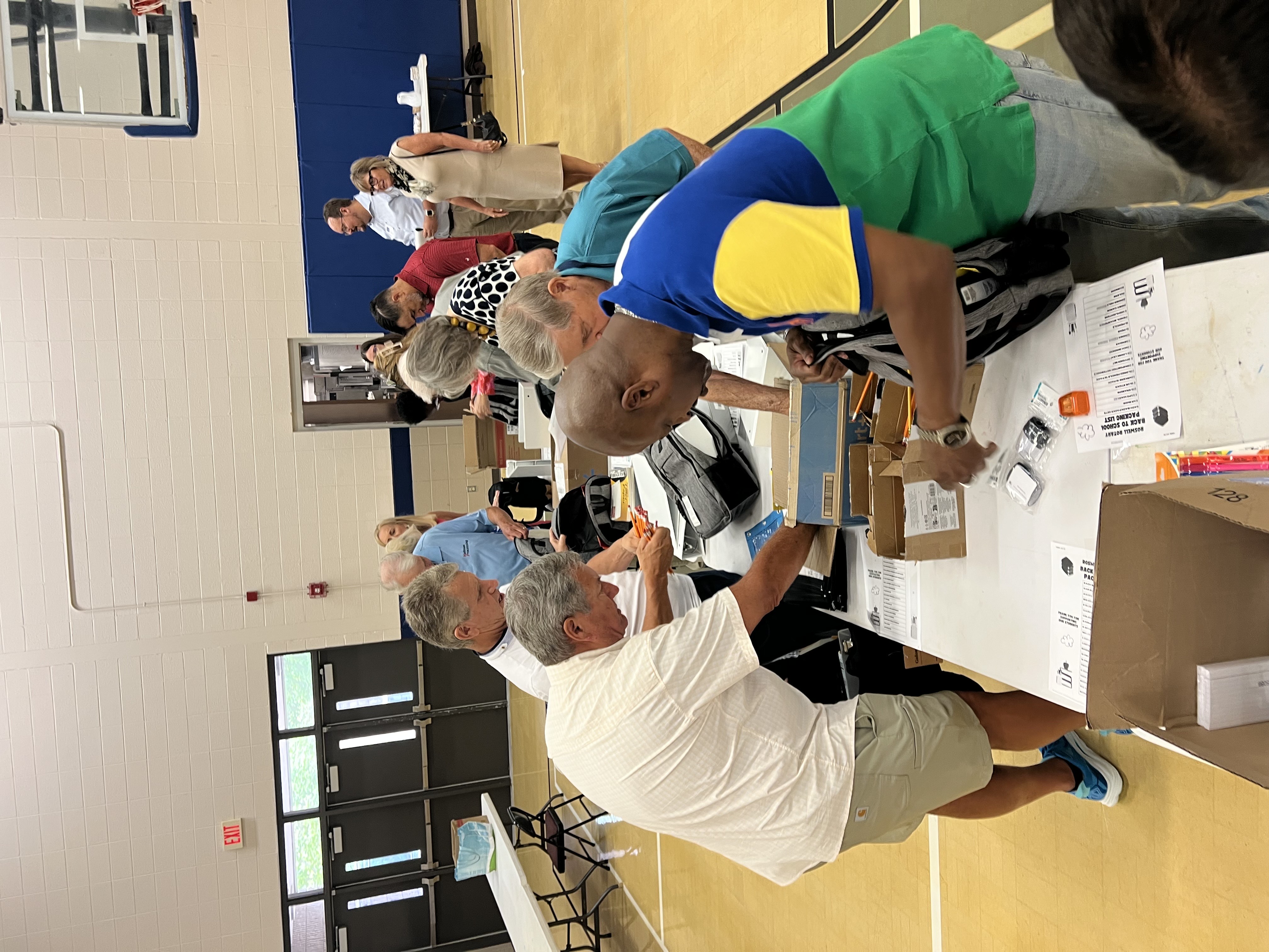 Roswell Rotary Club provided materials and packed 42 backpacks full of school supplies in support of Huskies Helping Huskies. These backpacks are provided to targeted students in need at Crabapple Middle School. Over 40 Roswell Rotarians assisted in the collection and packing of these supplies.